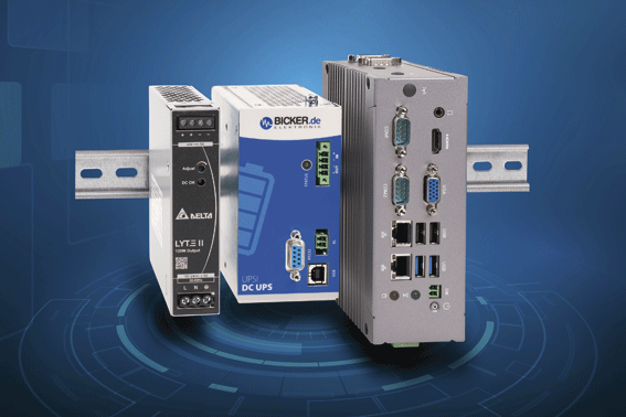 Die Bicker Elektronik GmbH, Donauwörth, bietet ein robustes und ausfallsicheres Hutschienen-Komplettpaket für Steuerungs- und Automatisierungsaufgaben in industriellen Umgebungen. Das Bundle für die flexible DIN-Rail-Montage besteht aus drei aufeinander abgestimmten Komponenten: dem AC/DC-Netzteil Delta DRL-24V120W1EN, der DC-USV Bicker UPSI-2406DP1 mit integriertem Li-Ion-Batteriepack und dem Hutschienen-Industrie-PC GIGAIPC QBiX-DR-EHLA6412H-A1. Die hochwertigen Systemkomponenten gewährleisten eine zuverlässige und ausfallsichere 24V-Stromversorgung sowie hohe Rechenleistung für den Dauerbetrieb in rauen Industrieumgebungen.