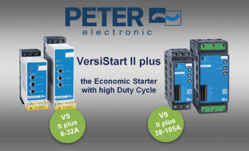 Mit den Soft-Startern der Serie VersiStart II plus bietet Peter electronic als Erweiterung des umfangreichen Produktsegments eine Auswahl zweiphasengesteuerter Sanftanlaufgeräte mit
