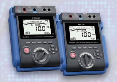 Mit den Geräten IT5050 und IR5051 bietet HIOKI kompakte Hochspannungs-Isolationswiderstands-Tester mit einer Ausgangsspannung bis 5 kV. Die einfach zu bedienenden Geräte ermöglichen stabile Messungen der Isolierung von Hochspannungsgeräten bis 10 TOhm (z.B. Transformatoren, Kabel und Motoren). Der IR5051 ist zusätzlich zum normalen Modus für die Messung des Isolationswiderstands mit einem speziellen Modus für die Messung des PV-Isolationswiderstands ausgestattet. So kann der IR5051 den Isolationswiderstand von PV-Anlagen während der Stromerzeugung prüfen, wobei dank einer CAT III 2000 V Sicherheitseinstufung die Prüfung von 2000-V-PV-Anlagen möglich ist.